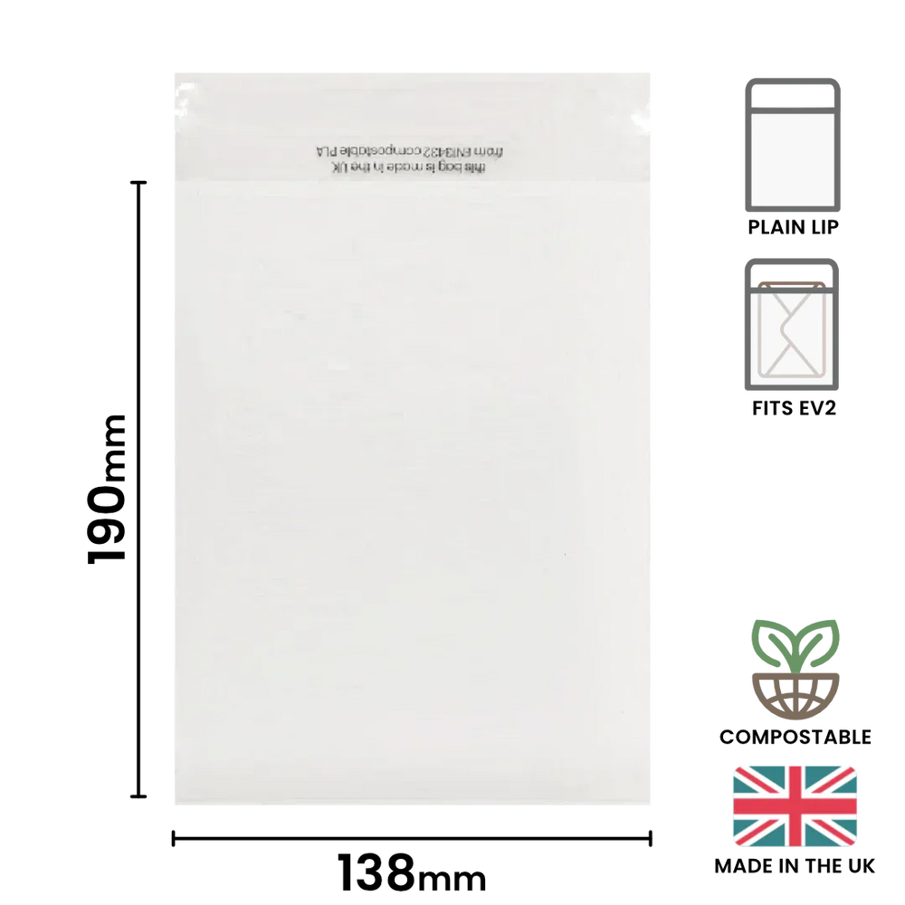 138x190mm Plain Lip Compostable Bag