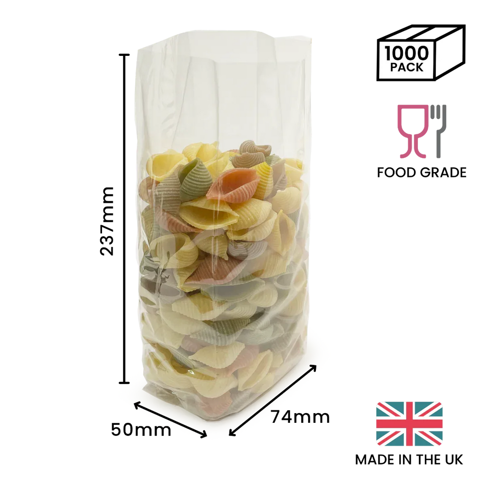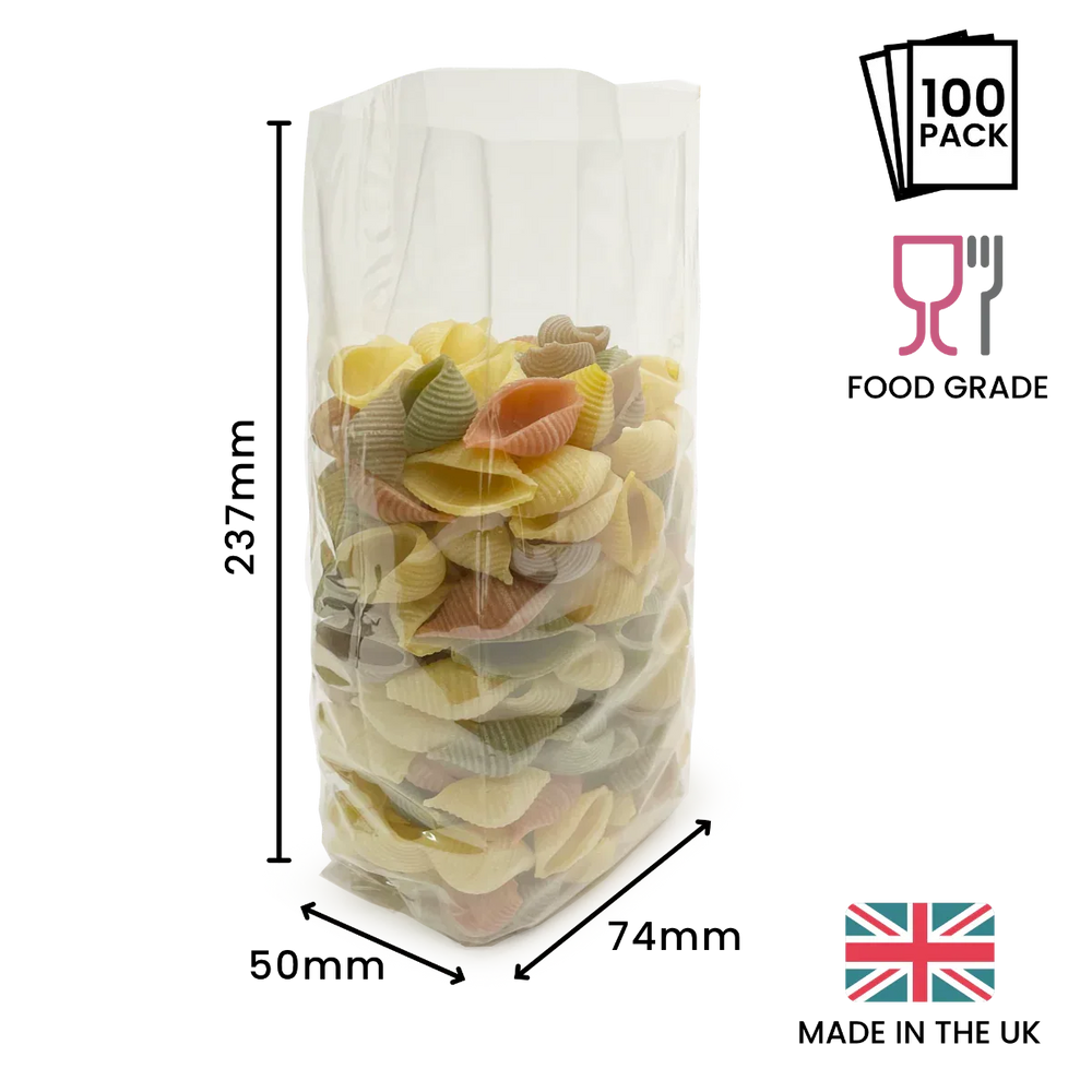 237 x 74 x 50mm Folded-Base Cellulose Clear Gusset Bag